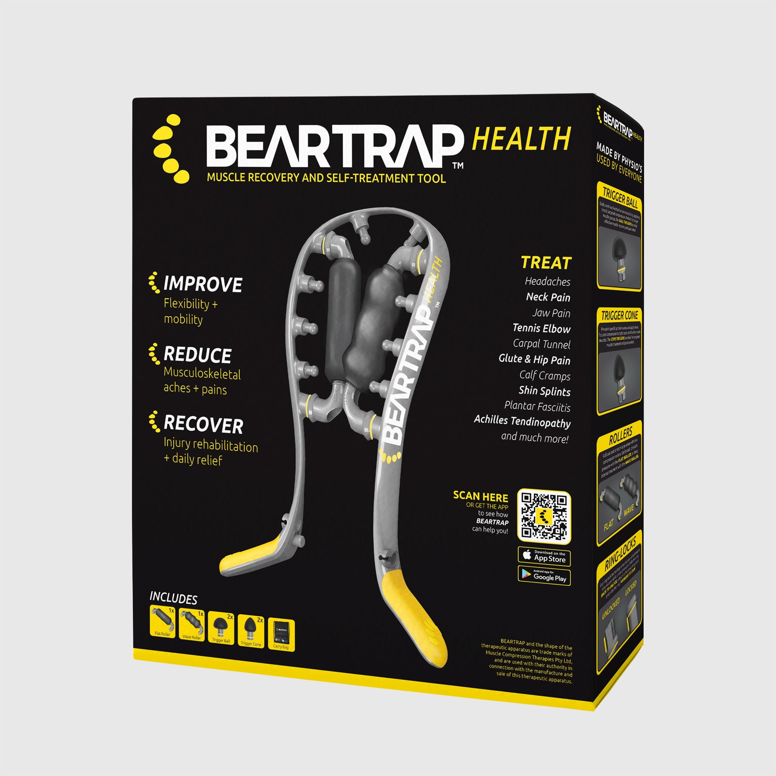 The Beartrap massage tool is revolutionary tool that puts the power of real physiotherapy techniques in your hands! Emulating manual therapy techniques used by therapists around the world Beartrap can get you training harder, recovering faster, and feeling better.